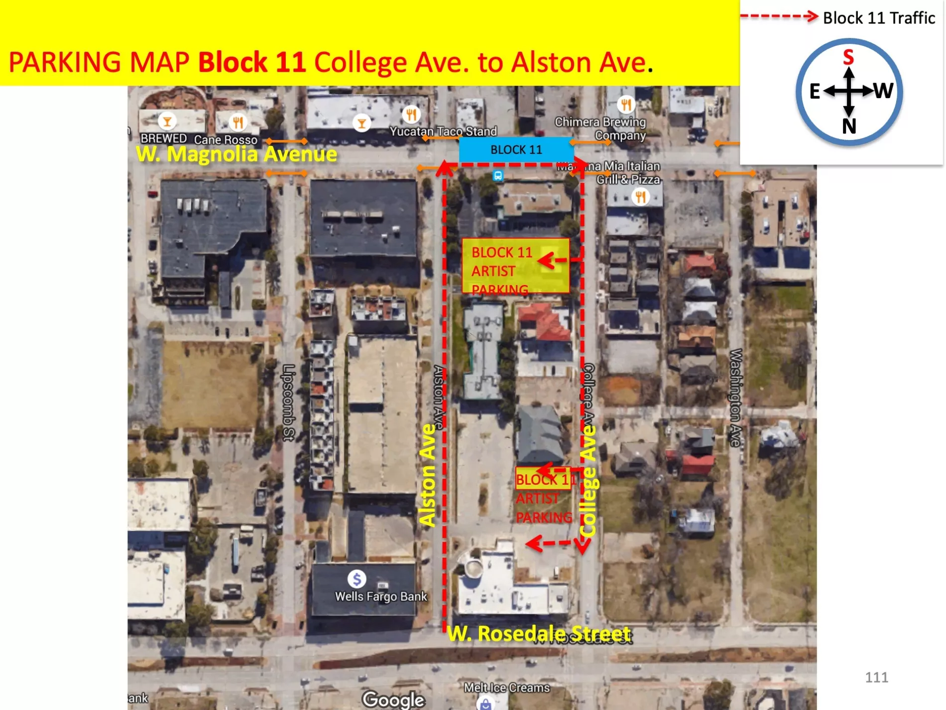 This may feel odd to look at now but when you are driving you will be looking at the map in the very same direction you are pointed in your car. The example maps that we will share here explain how to arrive and what the street will look like to you AS YOU ARRIVE. The maps are facing the same direction (facing south) that your car will be facing (facing south) as you arrive. This is similar to the way that your Apple Map or Google Map will automatically orient itself as you drive, these maps are intentionally oriented to your driving view.