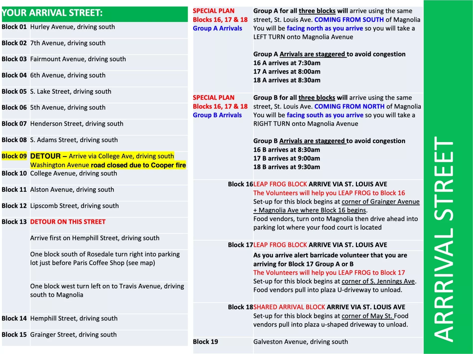 7:00am BLOCK SPONSORS AND EARLY FOOD VENDORS arrive to set up on street first
