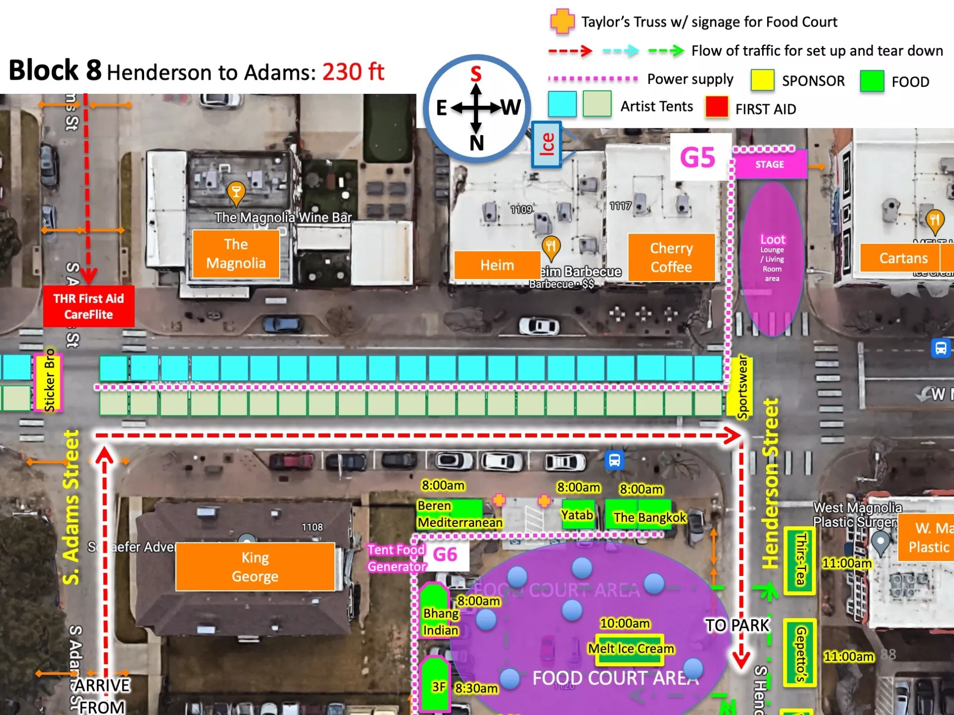 7:00am BLOCK SPONSORS AND EARLY FOOD VENDORS arrive to set up on street first